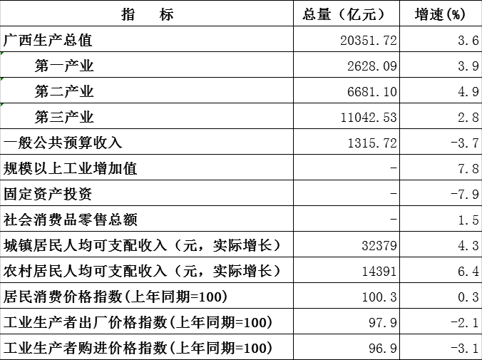 2024年1-9月广西主要经济指标数据表