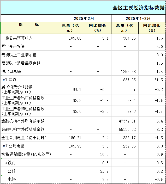 2025年1-2月全区主要经济指标数据