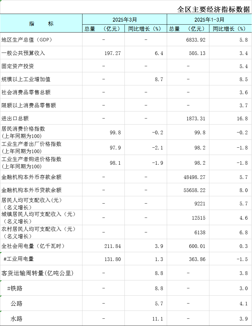 2025年1-3月广西主要经济指标数据