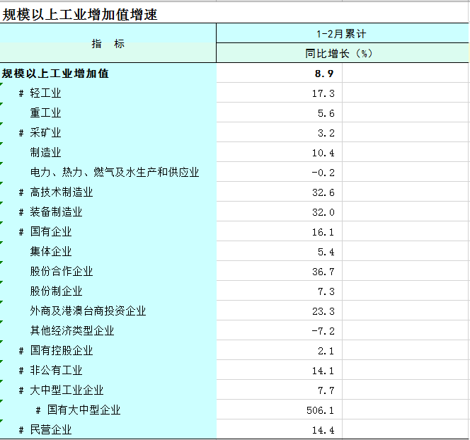 全区工业生产数据