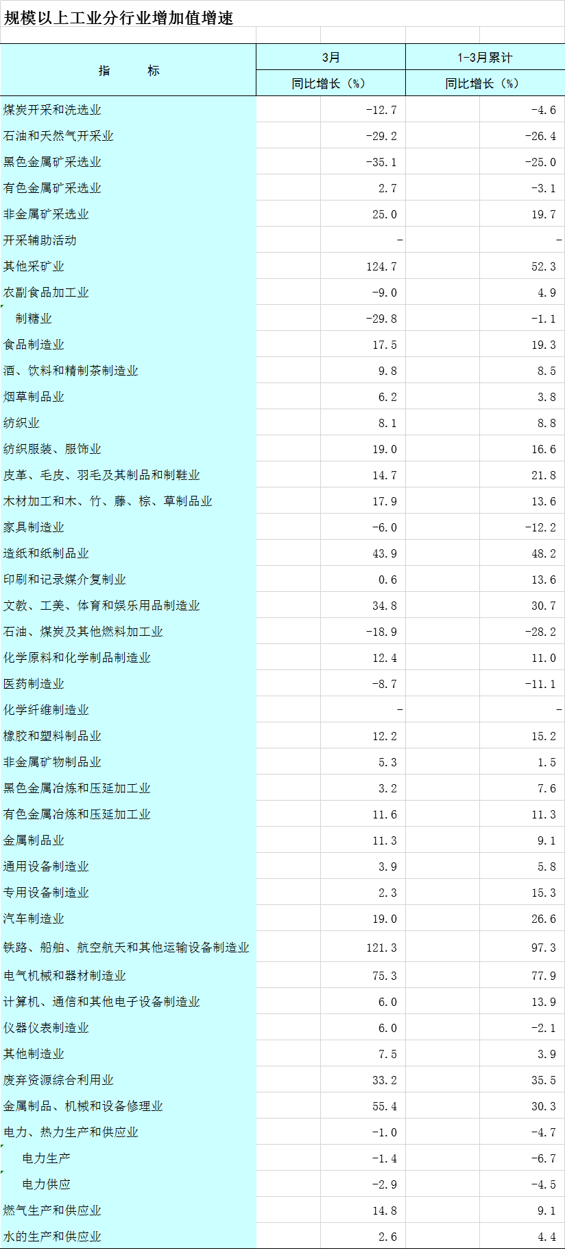 2025年1-3月广西规模以上工业分行业增加值增速