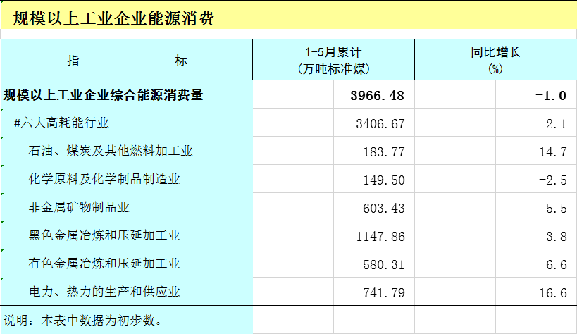 2025年1-5月广西规模以上工业企业能源消费