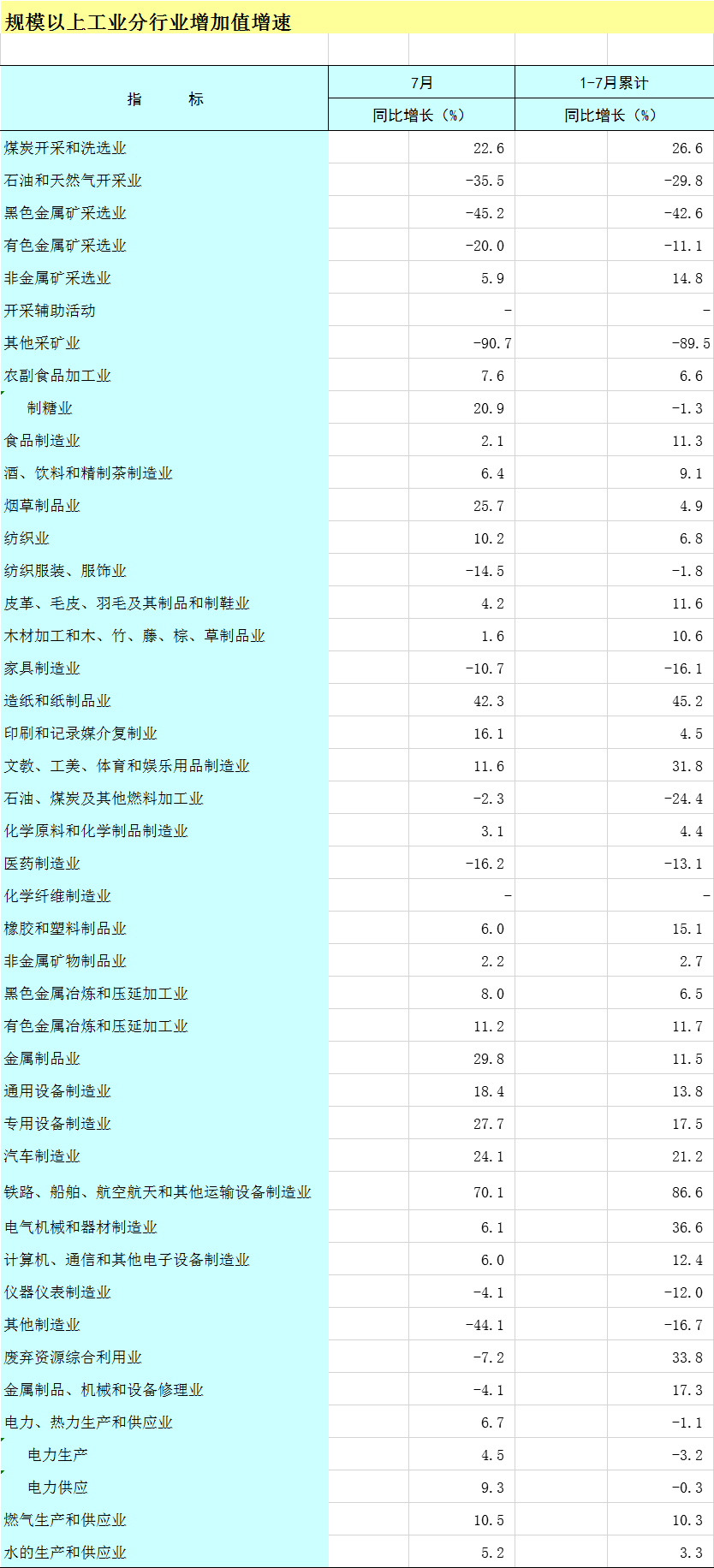 2025年1-7月广西规模以上工业分行业增加值增速