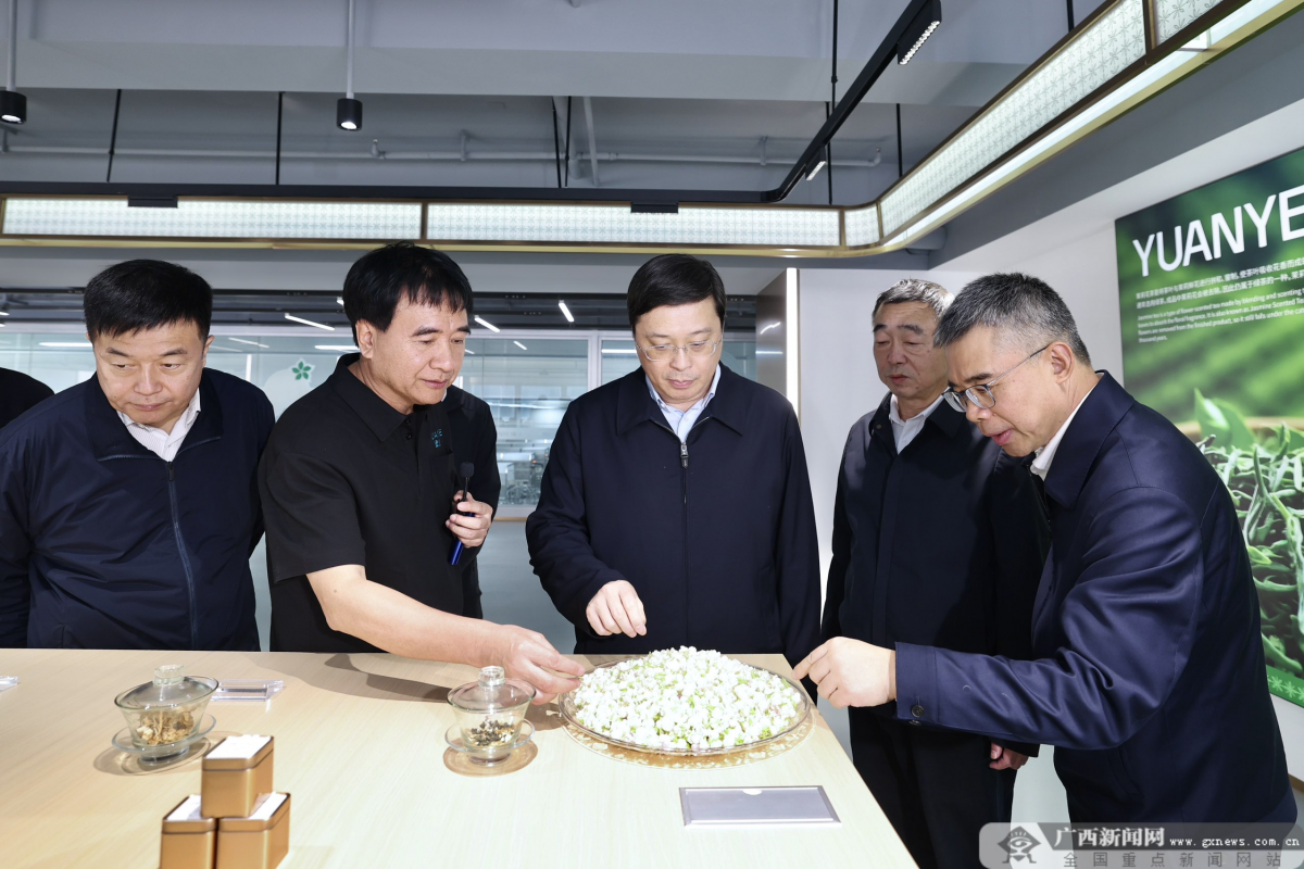 11月13日至14日,自治区主席韦韬深入南宁市横州市、宾阳县、上林县开展调研。韦韬来到广西中肯茶业有限公司,了解茉莉花产业发展生产情况。记者 邓华 摄