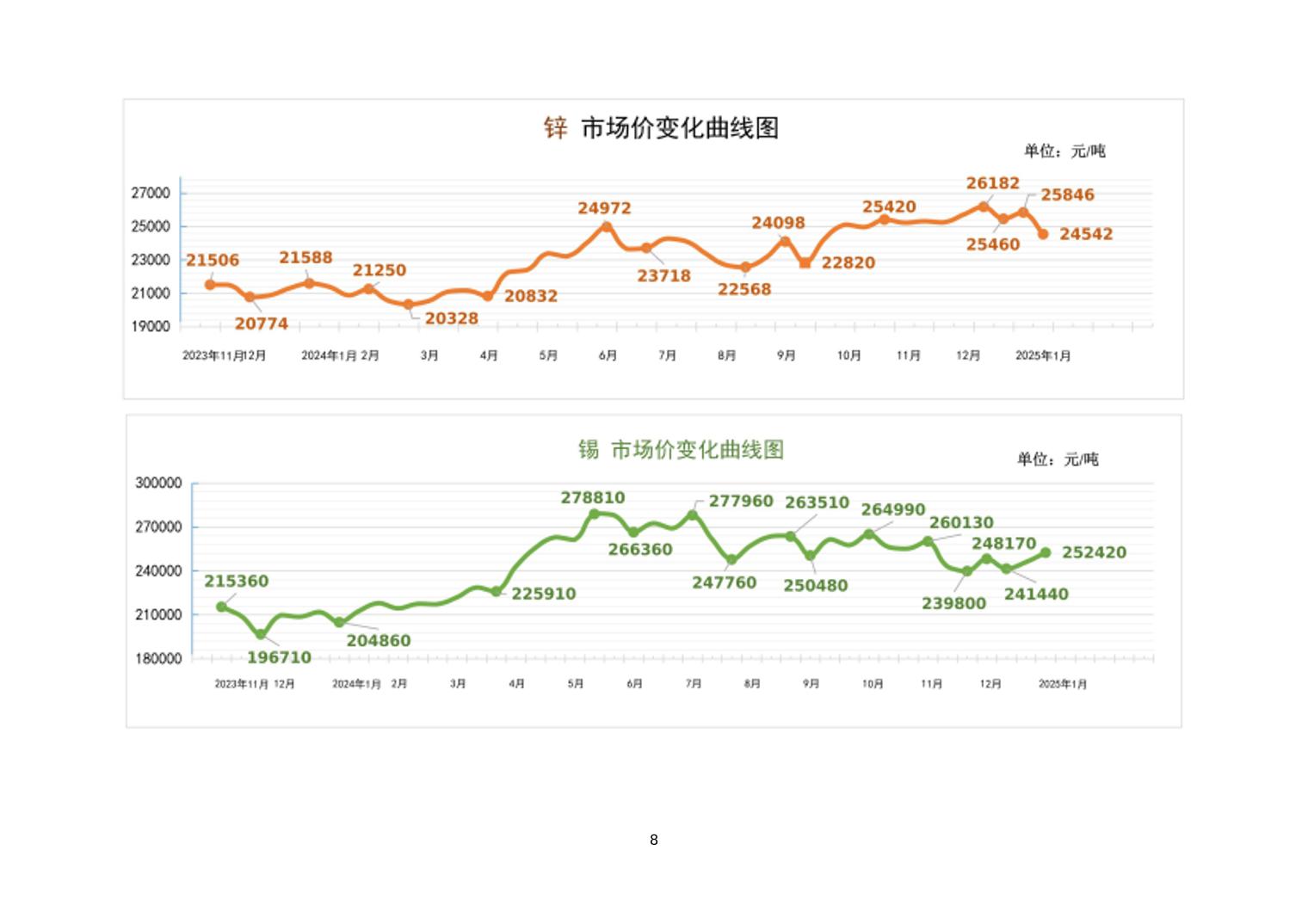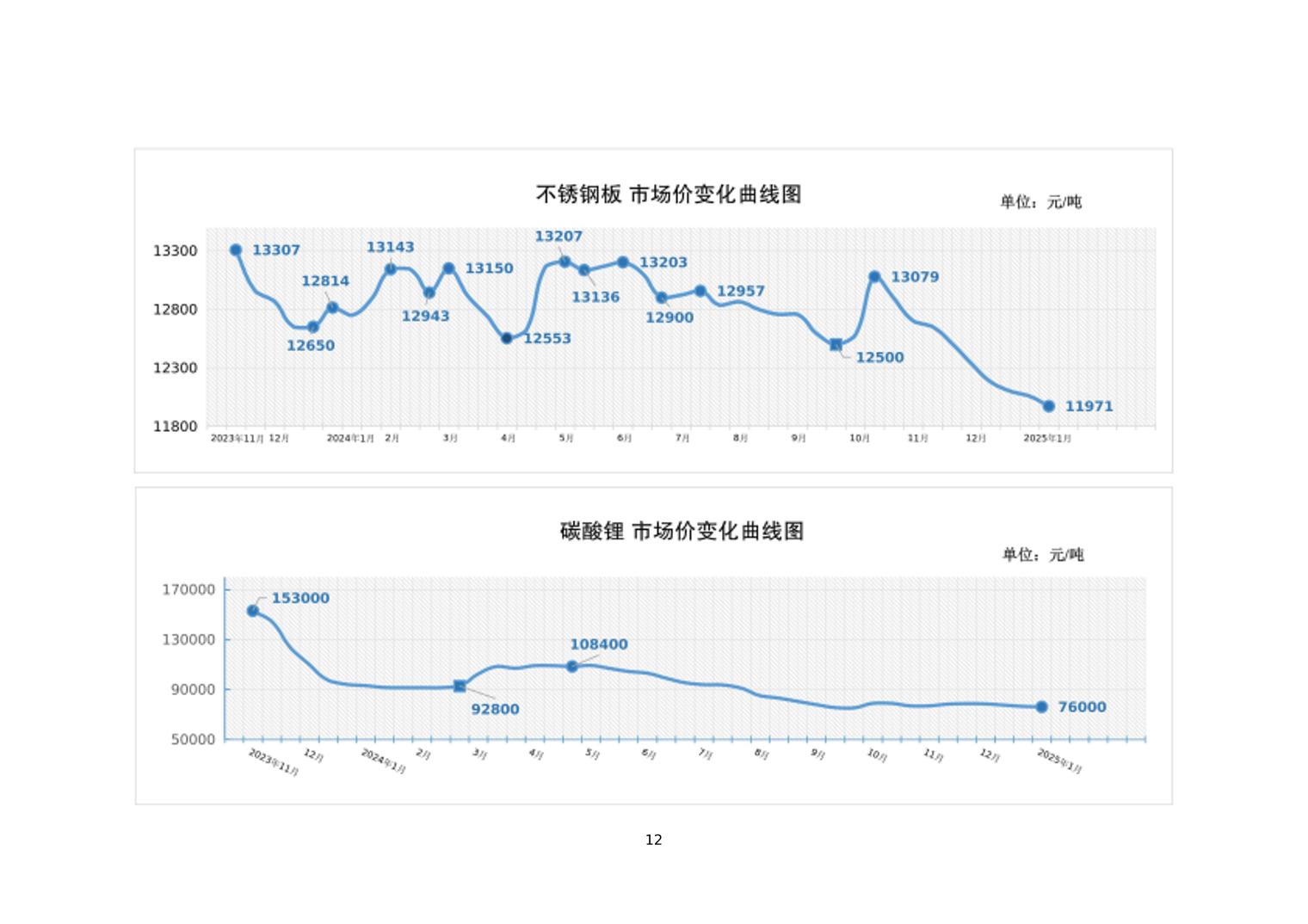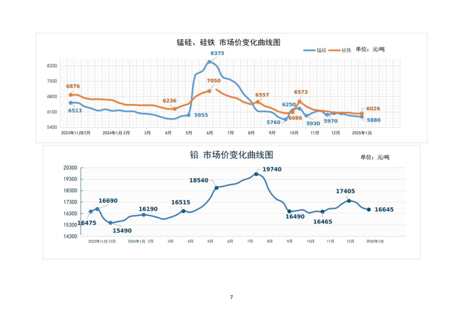 2025年1月上旬19种主要工业品市场现货价格变动情况
