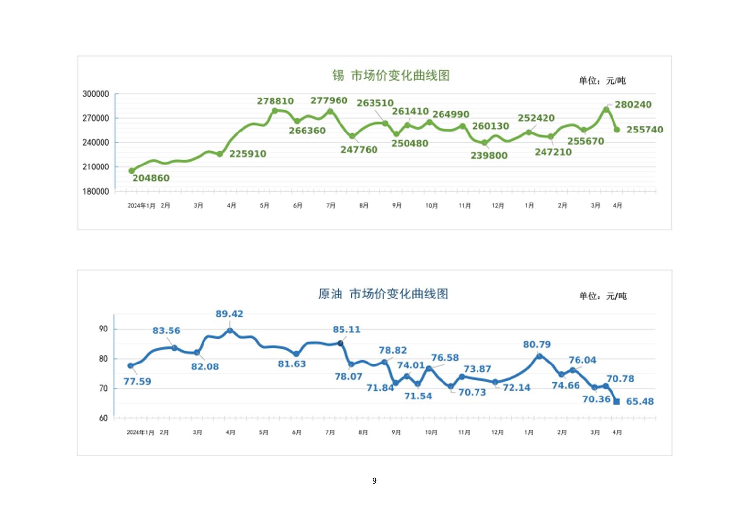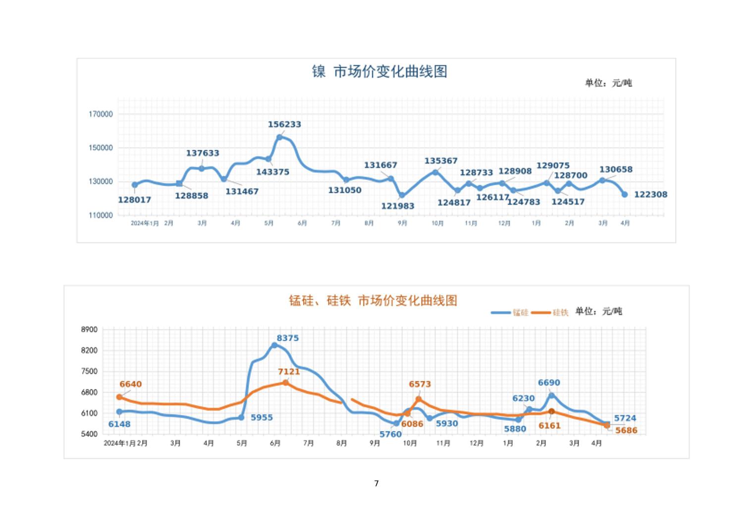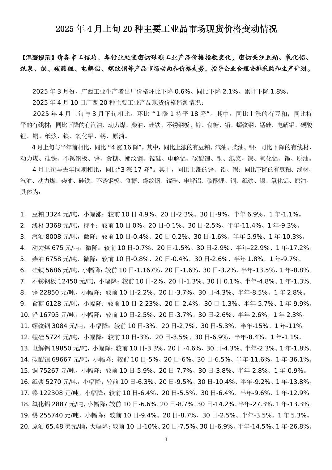 2025年4月上旬20种主要工业品市场现货价格变动情况