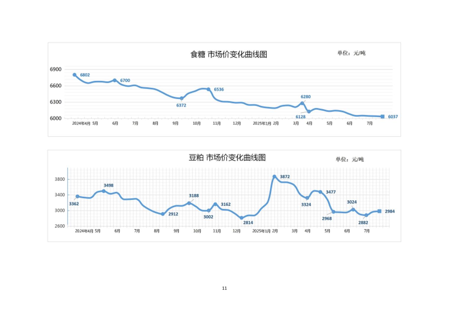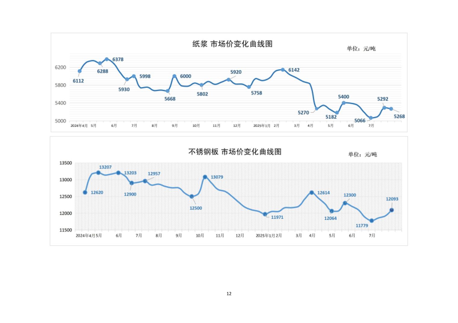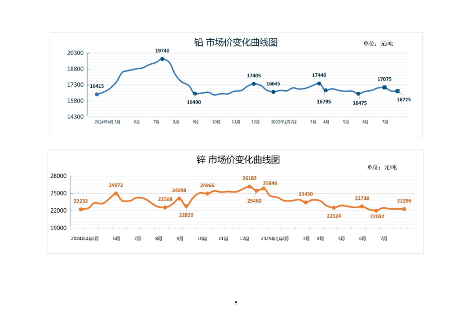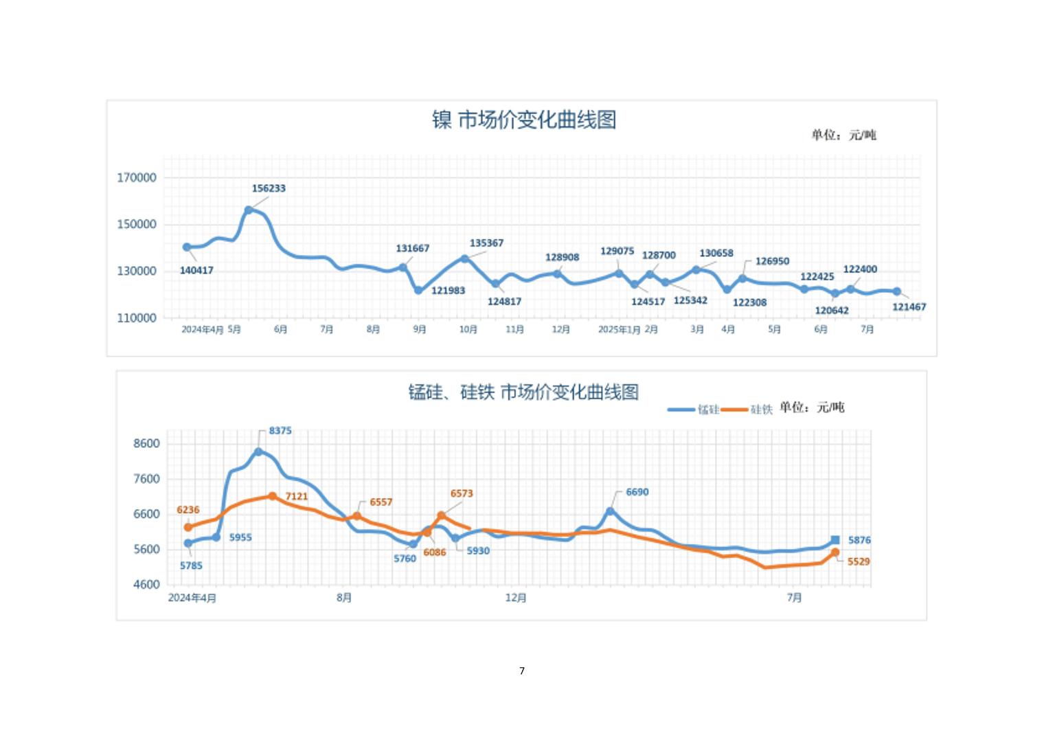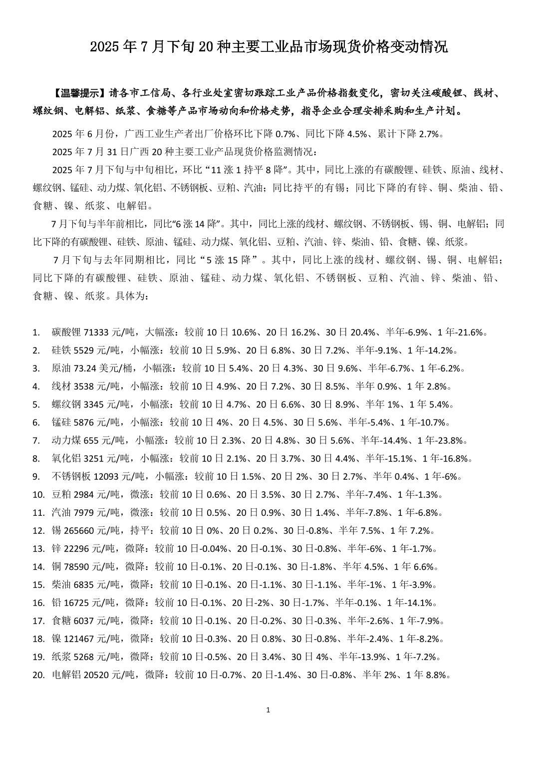 2025年7月下旬20种主要工业品市场现货价格变动情况