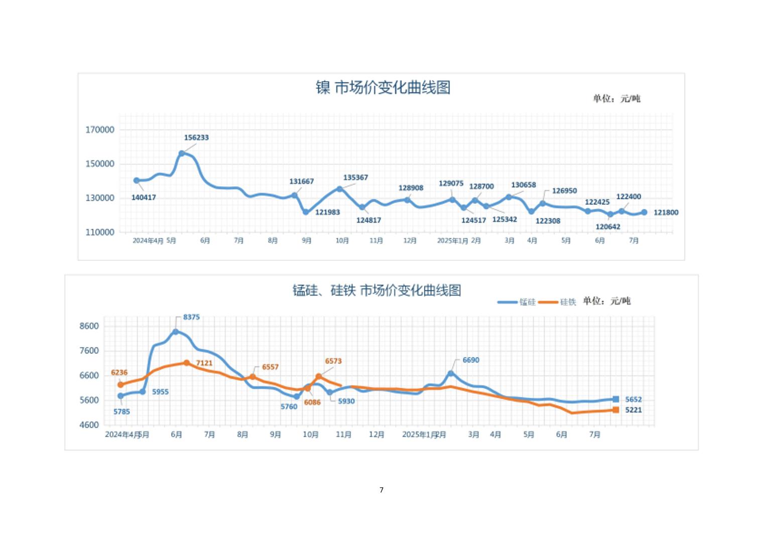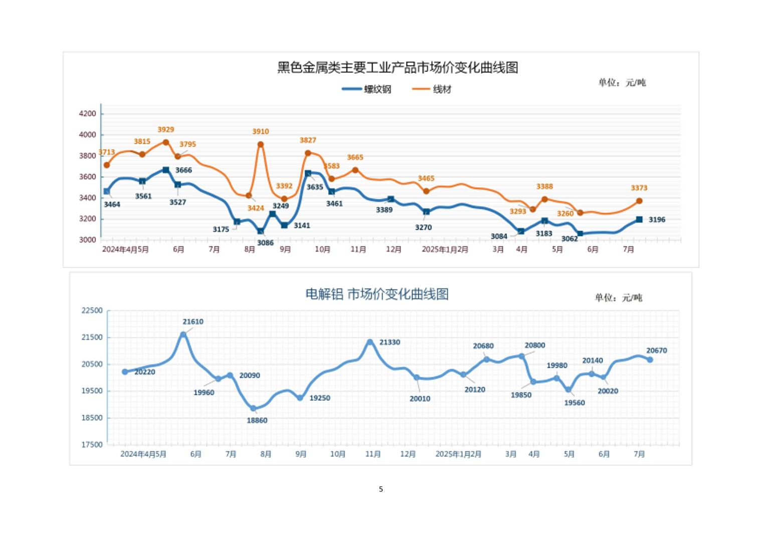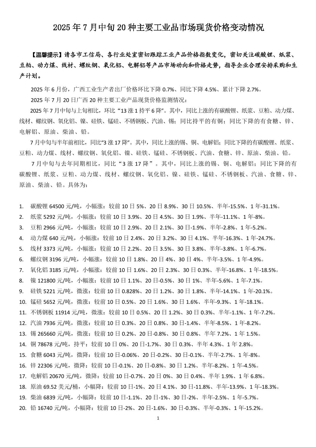 2025年7月中旬20种主要工业品市场现货价格变动情况