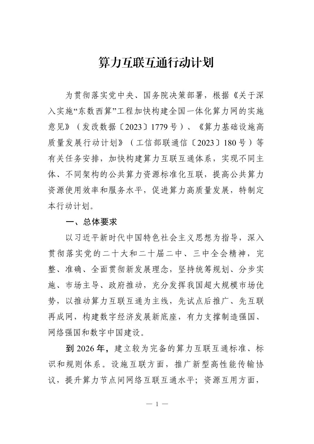 | 标 题: 工业和信息化部关于印发《算力互联互通行动计划》的通知 | |
