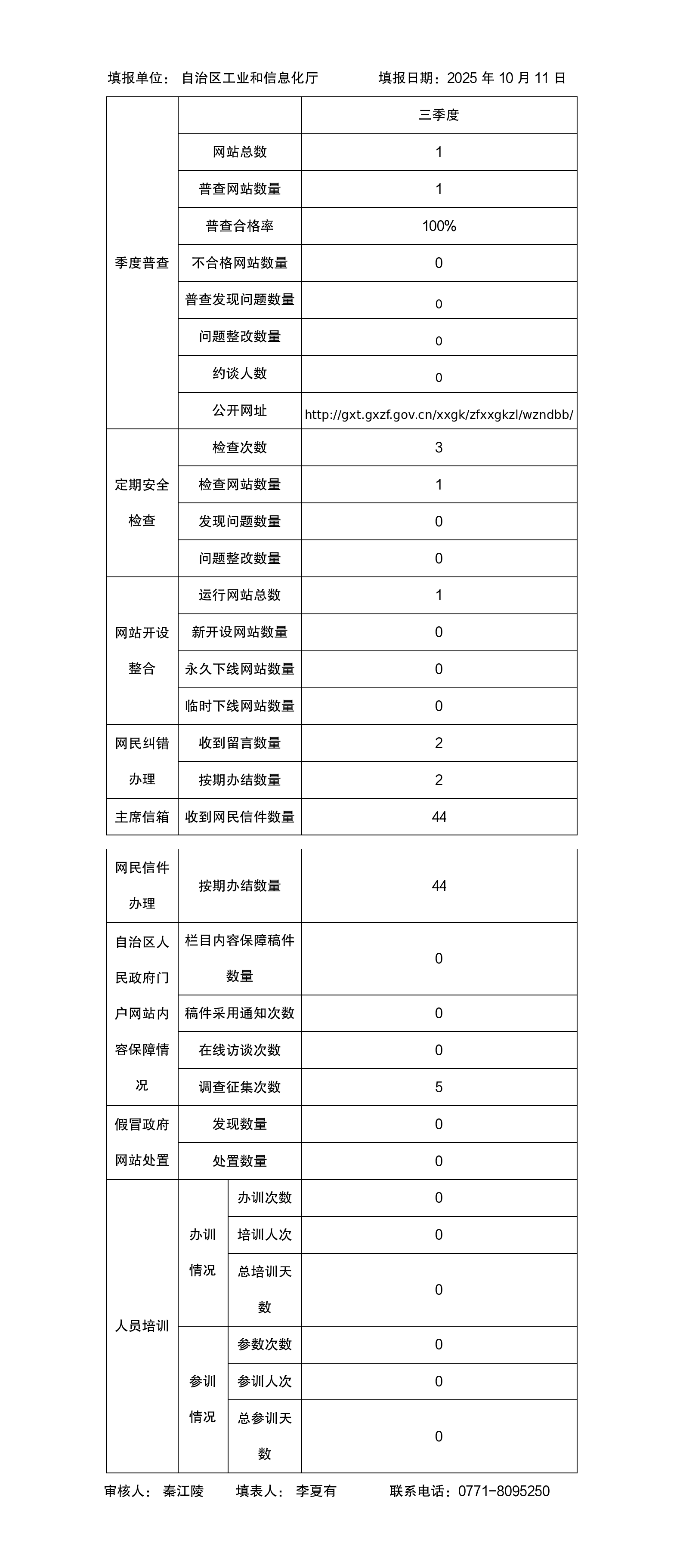 【季度普查】杏吧 网站监管2025年第三季度普查报表