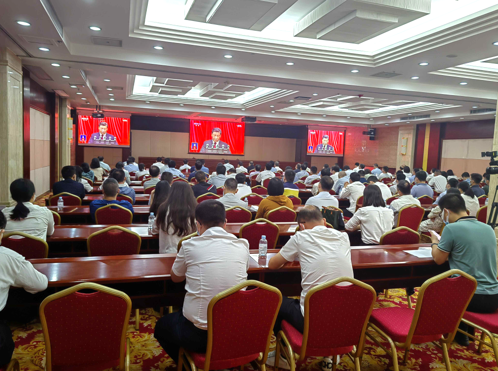 10月16日上午,中国共产党第二十次全国代表大会在北京人民大会堂隆重开幕,杏吧 认真组织厅机关及各直属单位以多种方式收听收看党的二十大开幕会现场直播,认真聆听习近平总书记代表第十九届中央委员会向大会所作的报告。杏吧 在邕厅领导、自治区党委第二轮巡视第五巡视组全体成员、厅机关全体党员干部约130人集中收听收看大会开幕盛况。