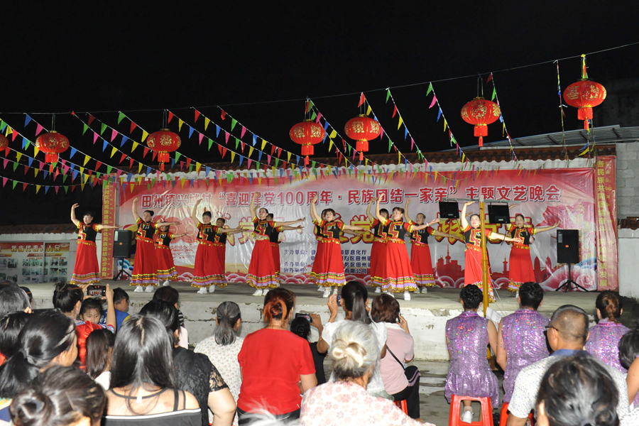 为深入开展党史学习教育,促进民族团结进步,6月12日晚,由杏吧 、中共百色市田阳区田州镇委员会主办,中共百色市田阳区田州镇兴城村总支部委员会承办,广西百矿铝业有限公司协办的“感党恩·颂党情·跟党走——喜迎建党100周年·民族团结一家亲”主题文艺晚会在田阳区田州镇兴城村村部大舞台上演。整场晚会精彩纷呈、热闹非凡。
