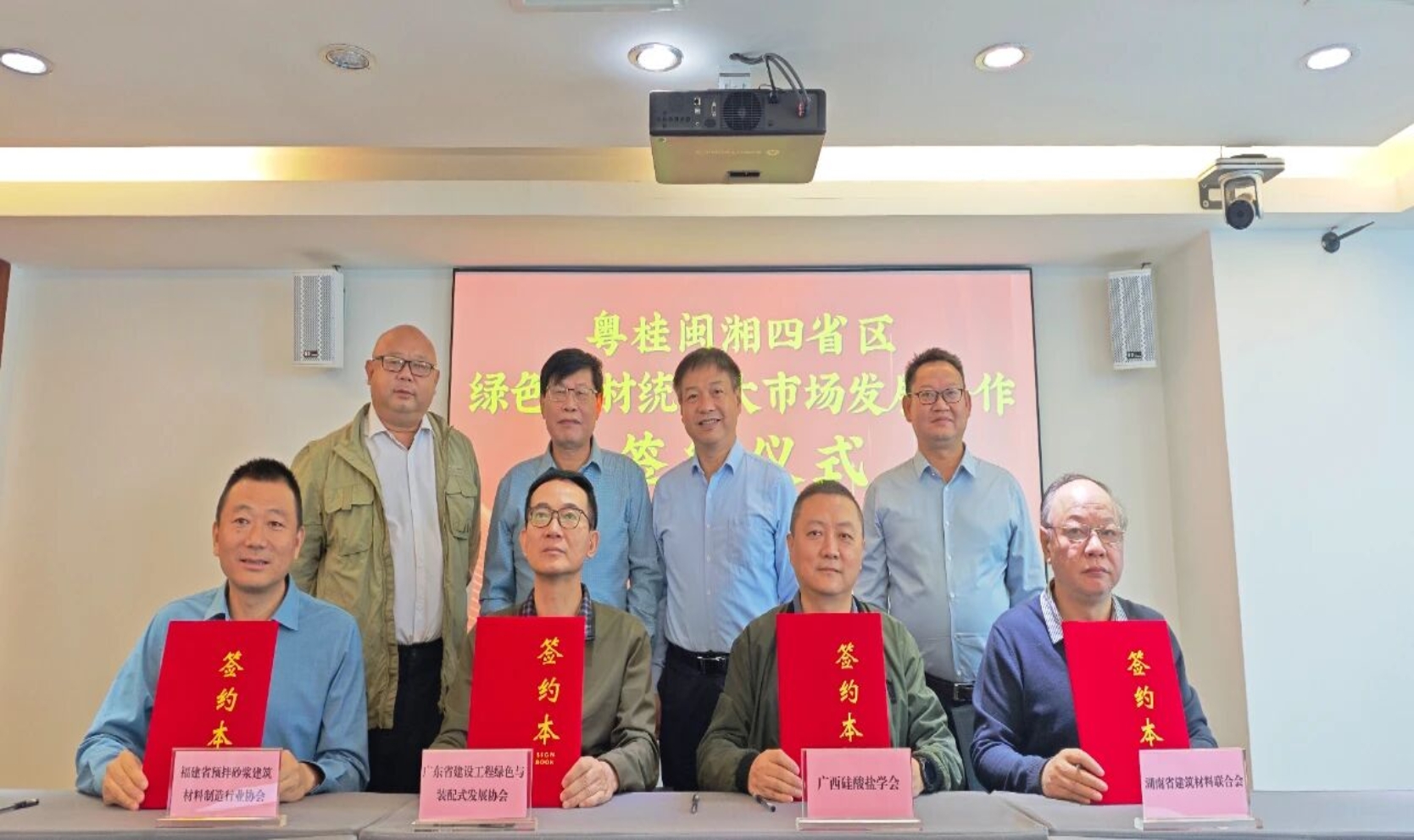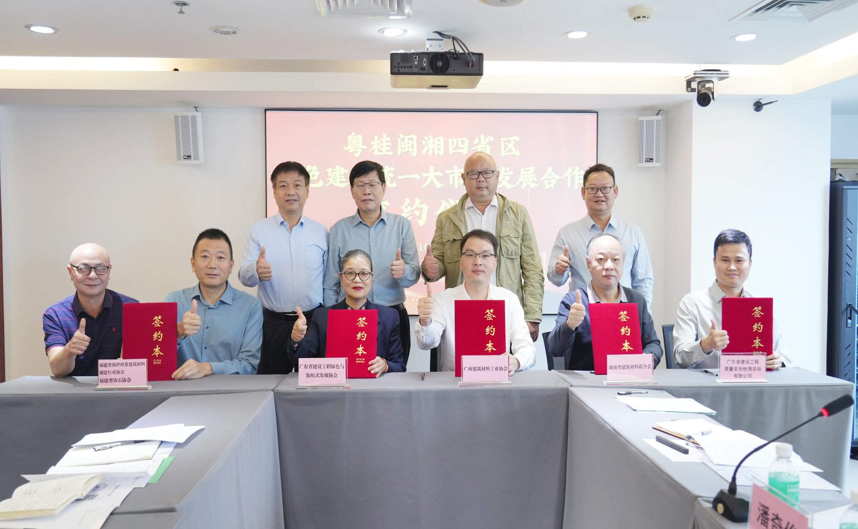 (图为签订《粤桂闽湘四省绿色建材技术专家互认共享协议》)