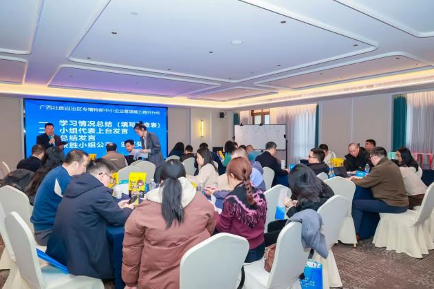活动期间,工业和信息化部科技司原副巡视员盛喜军以《加强标准体系建设,助力企业高质量发展》为题,围绕新时代加强标准体系建设的重要性、新时代标准化的特征、标准与高质量发展的关系、标准化如何助力企业高质量发展等方面展开授课。邀请中科院博士崔艳艳为广西企业家带来《从小巨人到单项冠军——促进制造业高质量发展政策解读》,专精特新“小巨人”是位于产业基础核心领域和产业链关键环节,创新能力突出、掌握核心技术、细分市场占有率高、质量效益好,是优质中小企业的核心力量。崔博士围绕专精特新“小巨人”项目概况、项目申报、申报实操及工作建议展开详细解读,紧扣相关关键政策与梯度培育体系,详细展示专精特新“小巨人”项目的申报流程与实操步骤,并对申报过程中的注意事项提出了针对性建议。
