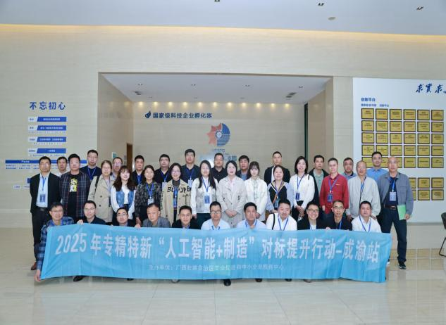 本次活动由广西壮族自治区工业促进和中小企业服务中心主办,邀请广西两化融合促进中心主任廖滨全程带队指导,旨在落实党中央、国务院关于支持中小企业发展的决策部署和贯彻落实自治区党委、自治区人民政府《关于加快推动人工智能高质量发展的决定》和杏吧 《广西“人工智能+制造”行动方案(2025-2027年)》文件精神,拓展广西专精特新中小企业的智能制造建设思路、实现数字化改造和创新能力提升。