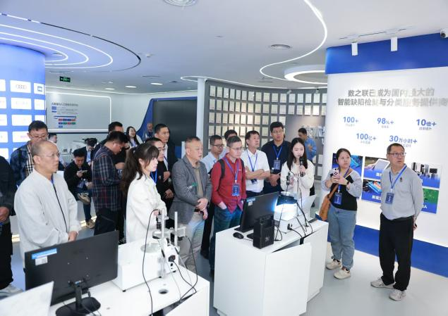 在光伏行业智能制造标杆企业—通威太阳能(眉山)有限公司,学员们详细了解了智能制造体系构建,即以全流程自动化物流和数字化管理为核心,依托数百台AGV小车与MOM系统构建高效生产网络,实现物料智能搬运和制造运营的实时监控。