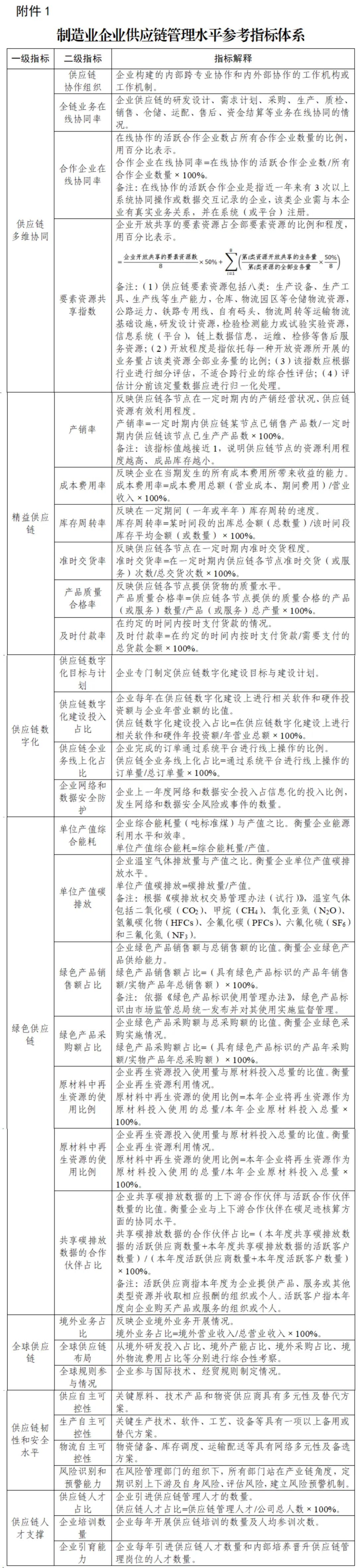 1.制造业企业供应链管理水平参考指标体系