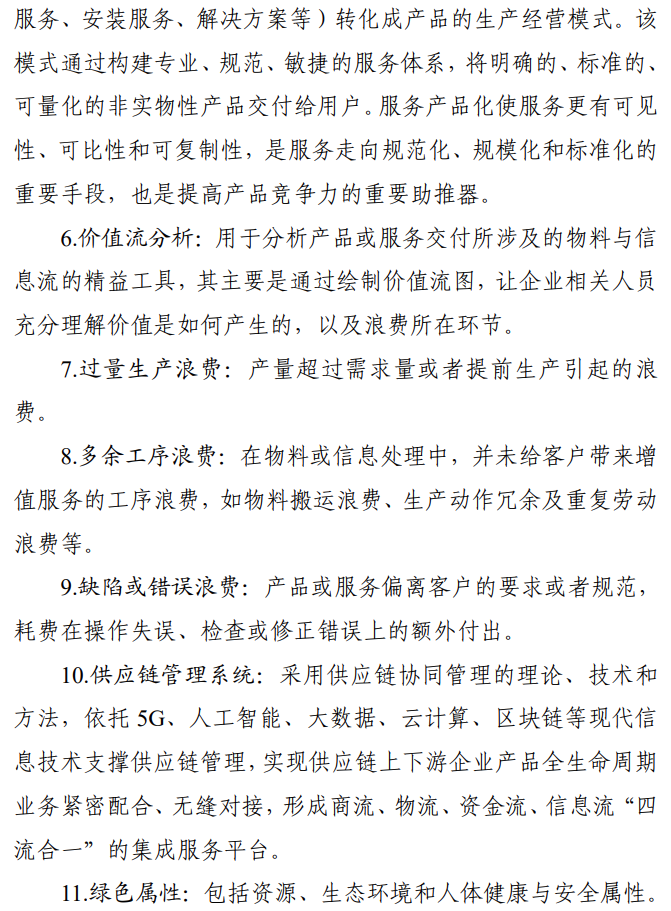 二是实现企业供应链管理精益化。明确精益供应链的主要内容,提出消除供应链各环节浪费、推动供应链全链条流程优化、健全标准化供应链体系等3条具体措施。