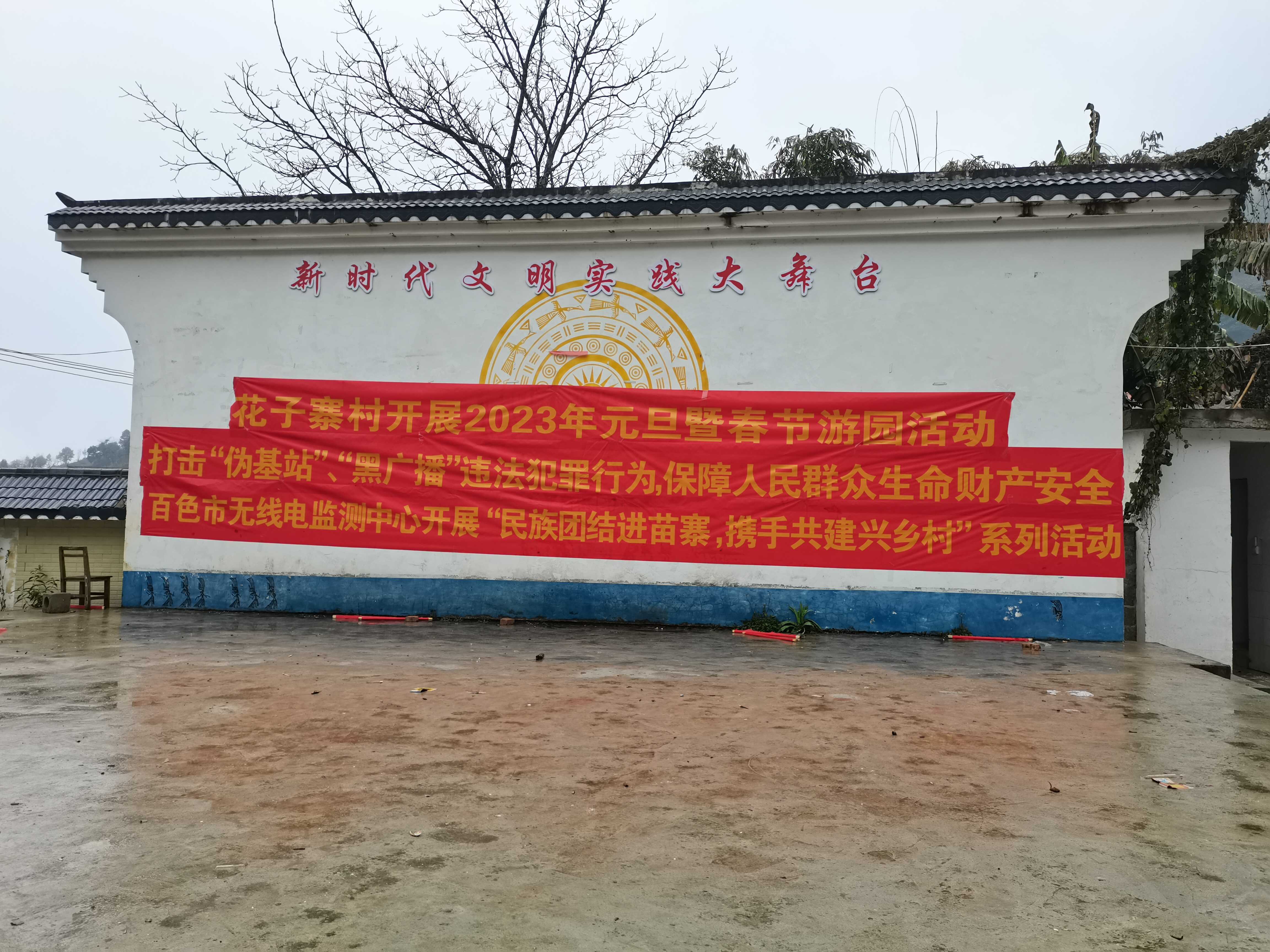 2023年春节前夕,百色市无线电监测中心结合无线电管理宣传工作,到花子寨村开展“民族团结进苗寨,携手共建兴乡村”新春游园活动。各族人民穿着靓丽色彩的民族服装,积极地加入到游园活动中。游园活动气氛欢快活跃,现场参加活动的各族人民群众玩得不亦乐乎。